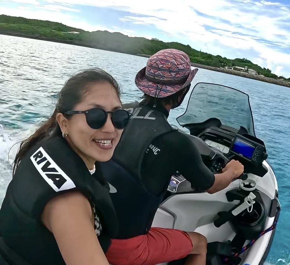 東京都出身、 学生の頃から千葉、神奈川でサーフィンを始め20代でインドネシアの バリ島に移住しサーフトリップ案内やサーフガイドを務める。日本に帰国後は八重山諸島など沖縄の離島、本島の海を潜り水中世界のすばらしさに魅了され自然豊かで海のきれいな伊平屋島に移住。現在は水難救助員、シュノーケリングガイド、スキンダイビングのインストラクターとして2024年に伊平屋島初のマリンレジャー専業ショップを開業。自社艇クルージングボートとジェットスキーで伊平屋ブルーをアテンドしています。快適に安心安全な海遊びを心掛けています。ぜひ遊びに来てください