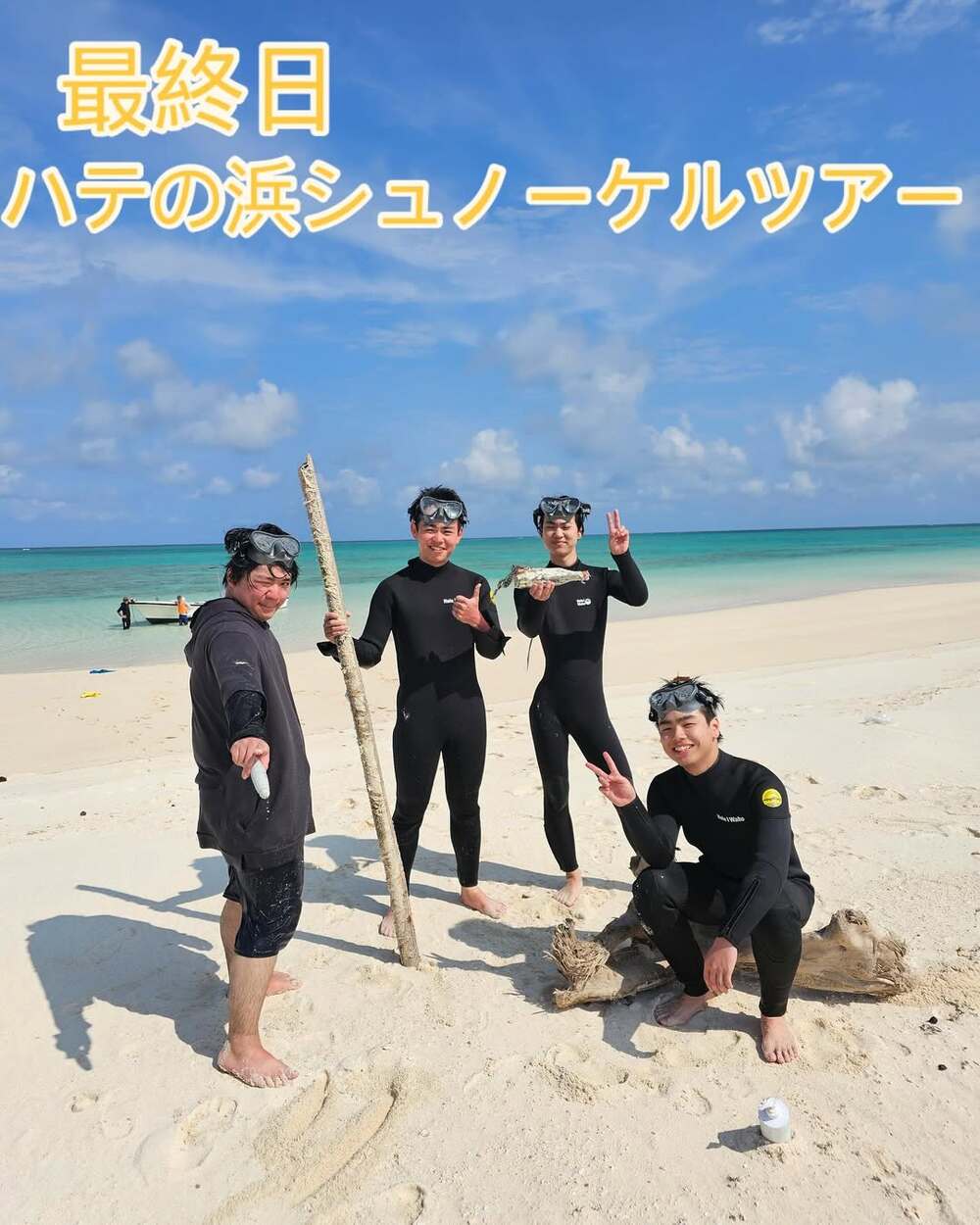 ハテの浜にて、遊泳区域内でのスノーケリングやエメラルドブルーの海を眺めながらの浜散策にお連れいたします。スノーケリング初心者の方でも、基本から懇切丁寧にお教えします。