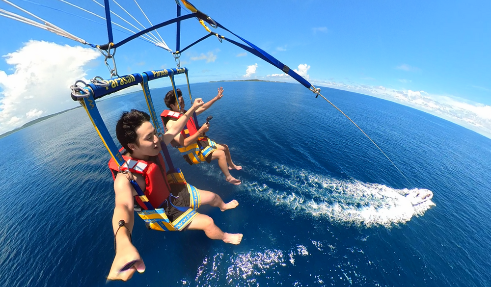 【津堅島|パラセーリング+BBQ|1日】パラセーリング+津堅島で楽しむ!オーシャンビューBBQ!