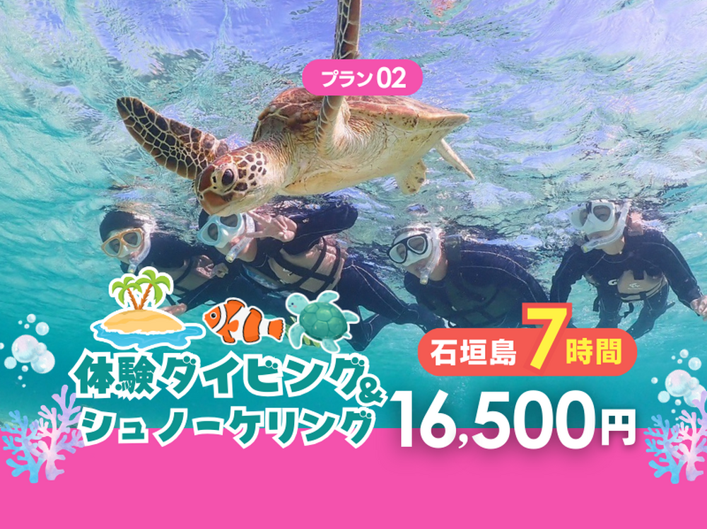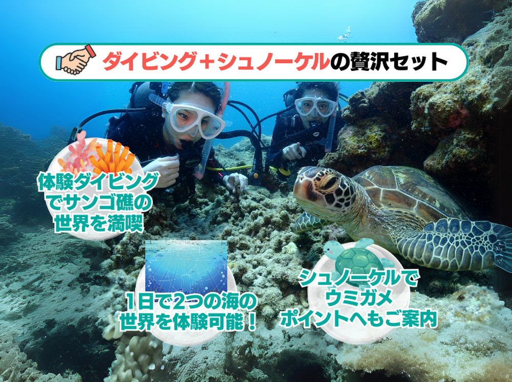 【初心者体験ダイビング&ウミガメシュノーケル|1日コース】石垣島幻の島上陸から体験ダイビング&ウミガメシュノーケルツアー♪<写真無料|ランチ付>