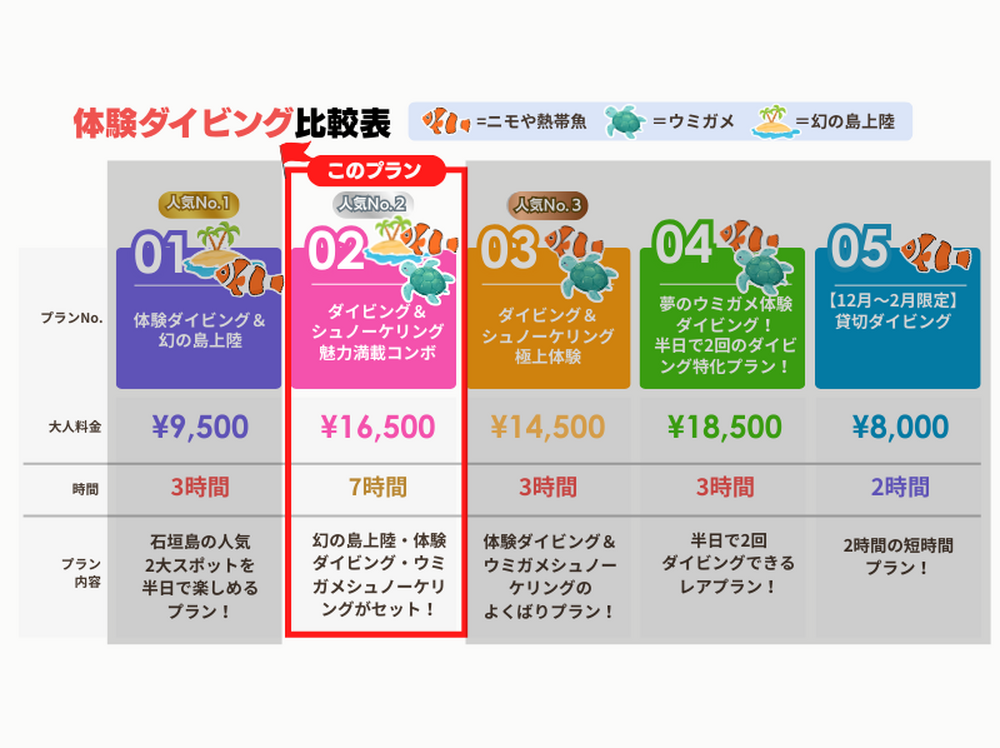 ●以下に当てはまる方はご参加をお断りする場合があります。過去または現在、該当するものがございましたら一度お問い合わせください。 喘息・肺結核・肺炎・気胸・重度の鼻炎・重度の花粉症・その他呼吸器系のトラブル・中耳炎・外耳炎鼓膜が破れている(その他の耳に関するトラブル)・心臓障害・不整脈や動悸高血圧・狭心症・その他の循環器系のトラブル・糖尿病・てんかんめまいや意識不明を起こす体質・閉所恐怖症・妊娠中の方。 ●最小催行人数2名となります。 ●体験ダイビング当日に飛行機登場予定の方は参加不可となりますので、予めご注意ください。 |