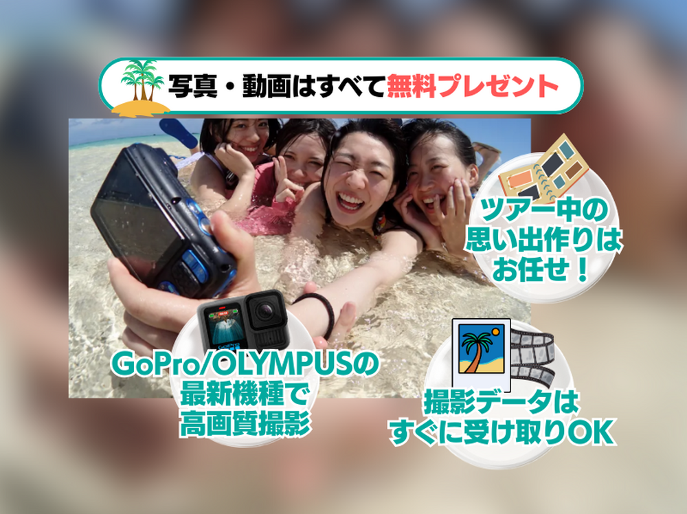 レンタルカメラはお客様ご自身で撮影可能です。ダイビング・シュノーケリングのどちらでもご利用いただけます。