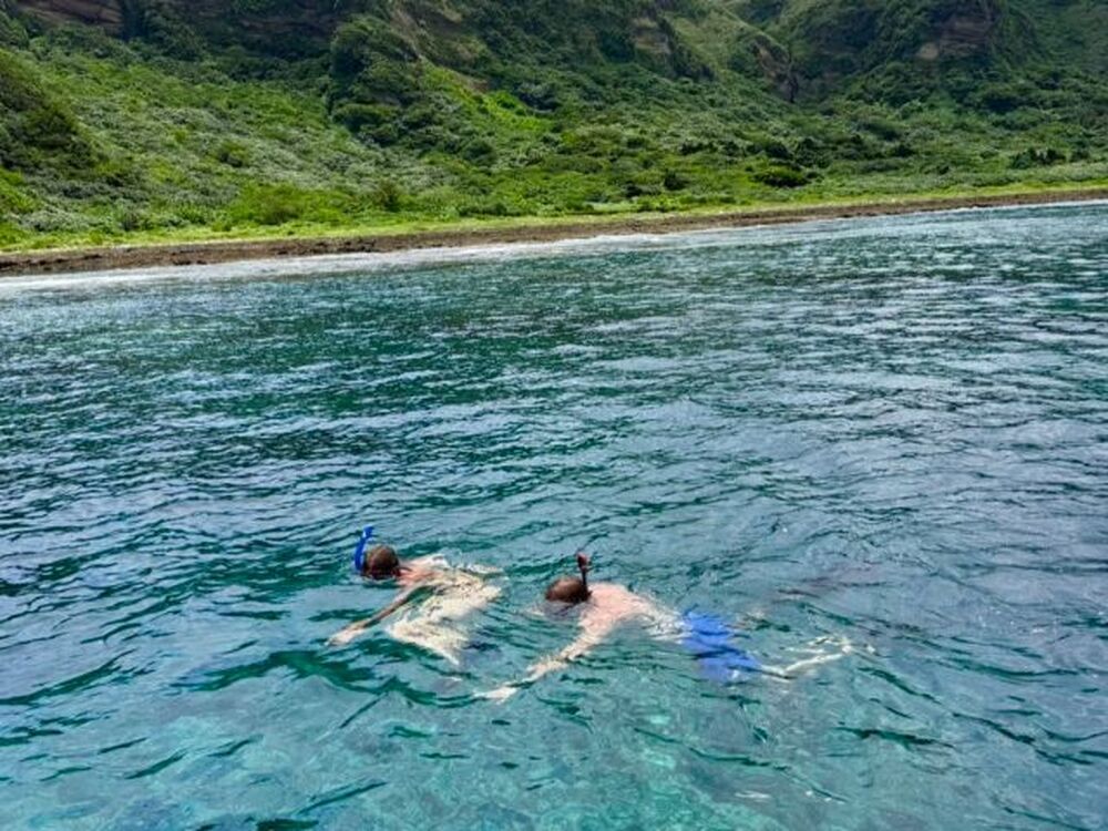 ハテの浜にて、遊泳区域内でのスノーケリングやエメラルドブルーの海を眺めながらの浜散策にお連れいたします。スノーケリング初心者の方でも、基本から懇切丁寧にお教えします。