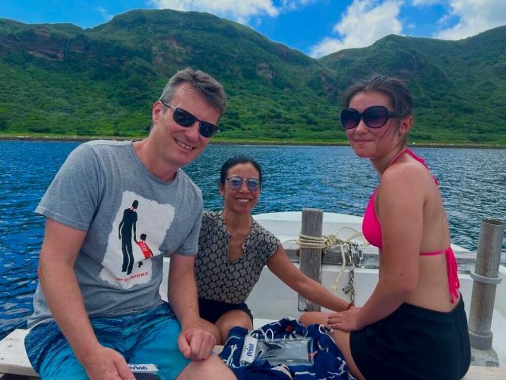 仲村船長は、はての浜渡航歴30年の大ベテラン船長です。珊瑚やお魚のお話しを差し上げつつ、高い確率でウミガメと出会えるグラスボートツアーをお送りしています。