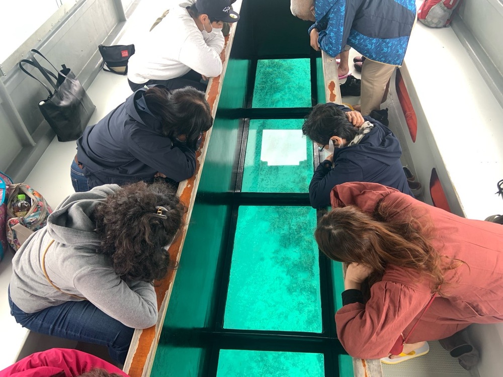 【冬季~春季グラスボートツアー:約2.5~3時間】海底観光をしながらウミガメ遭遇も全力で♬久米島ハテの浜上陸半日ツアー (ご希望に応じて送迎いたします)