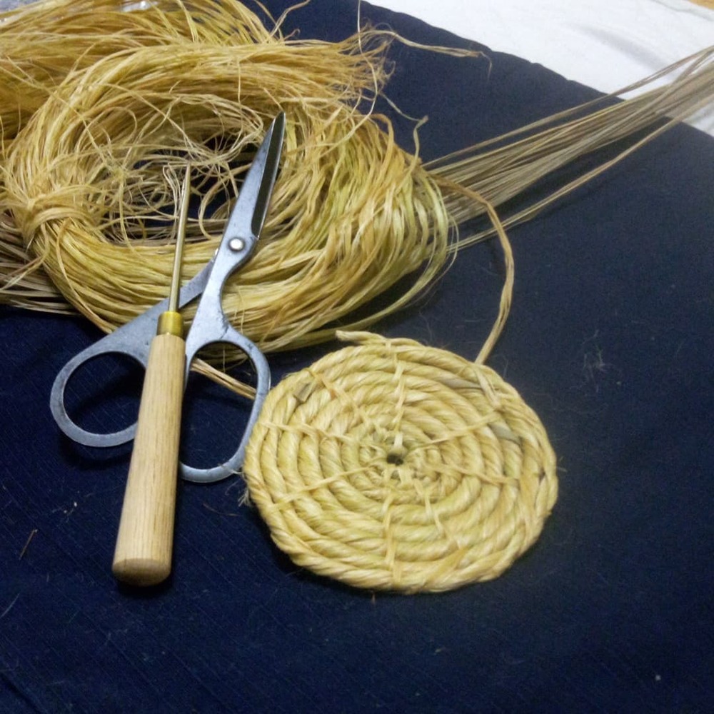 【苧麻の民具コースターづくり|1.5時間】しまたび限定プラン│宮古上布の原料の苧麻(ちょま)で作った縄を使って民具を作ります!