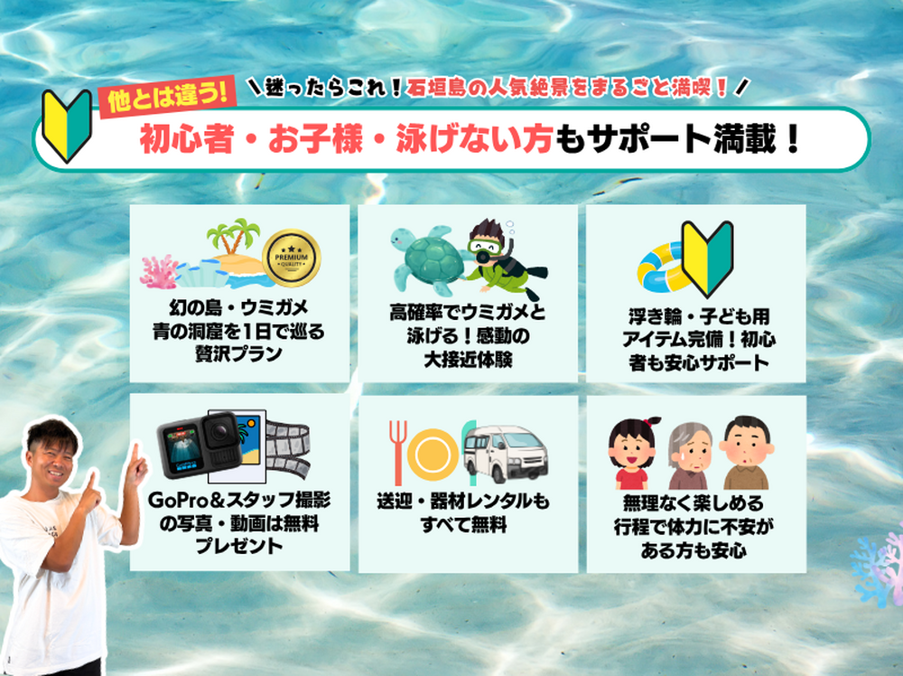 【プレミアムシュノーケリング体験|1日コース】石垣島初心者向け!石西礁湖のサンゴ!ウミガメ!幻の島を贅沢に満喫!【無料器材レンタル&写真データ】