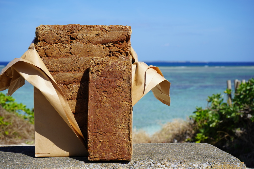 ブロックの黒糖を手割りする「カチ割り黒糖」体験をしていただきながら、さとうきび100% 最高級ランクA 特等 宮古多良間産 純黒糖をご堪能してさらに優雅なひとときを~