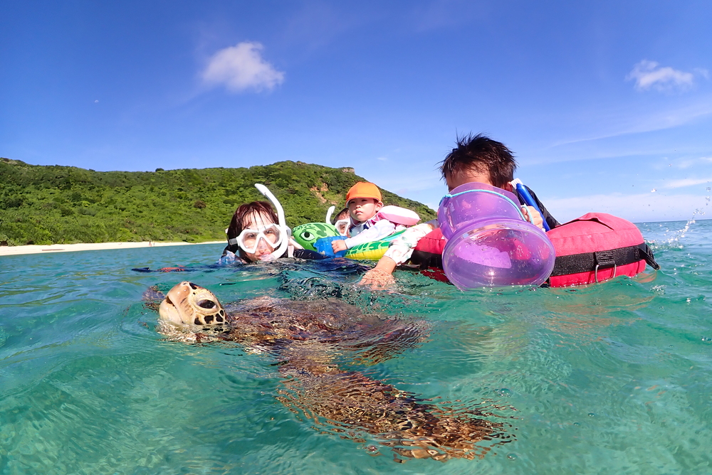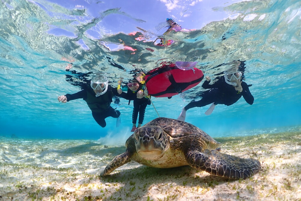 【宮古島|ウミガメシュノーケルフォトツアー/ご家族限定貸切/お得な家族貸切割|2時間】ウミガメ遭遇率100%!家族みんなでウミガメさんと優雅に泳いで写真&動画撮影♪