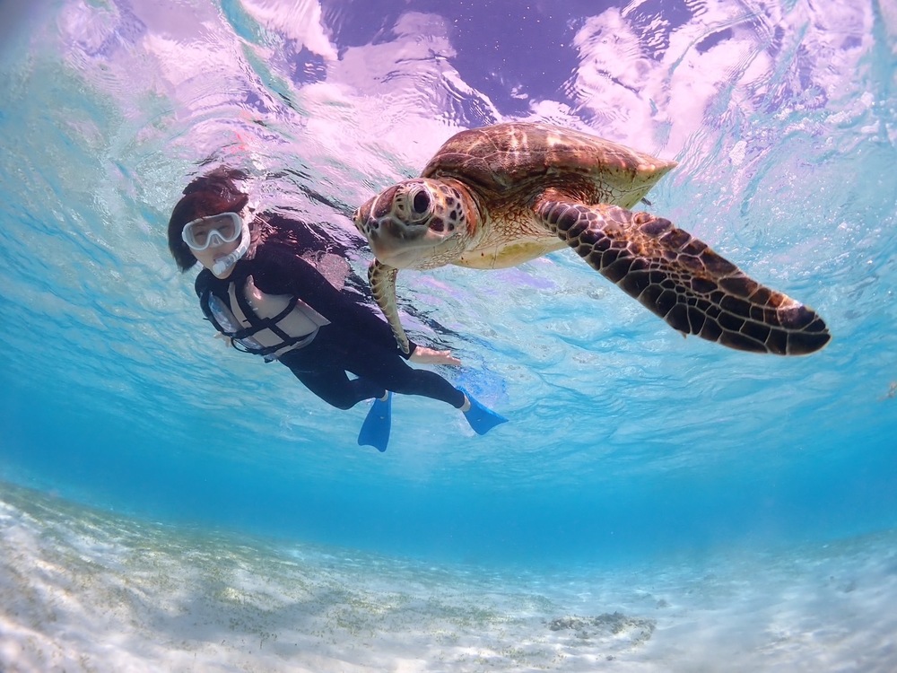 宮古島/完全貸切《遭遇率100%継続中!》大人気【ウミガメシュノーケリング】★送迎相談可!★撮影データ無料!★当日予約OK!