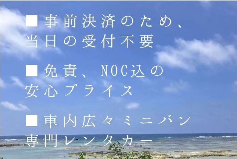 【宮古島|レンタカー|2日プラン】しまたび限定プラン│レンタカーで島をくまなく楽しむ!「7名乗りミニバンクラス」免責保証・NOC補償コミコミ!配車・乗捨てサービスも無料!