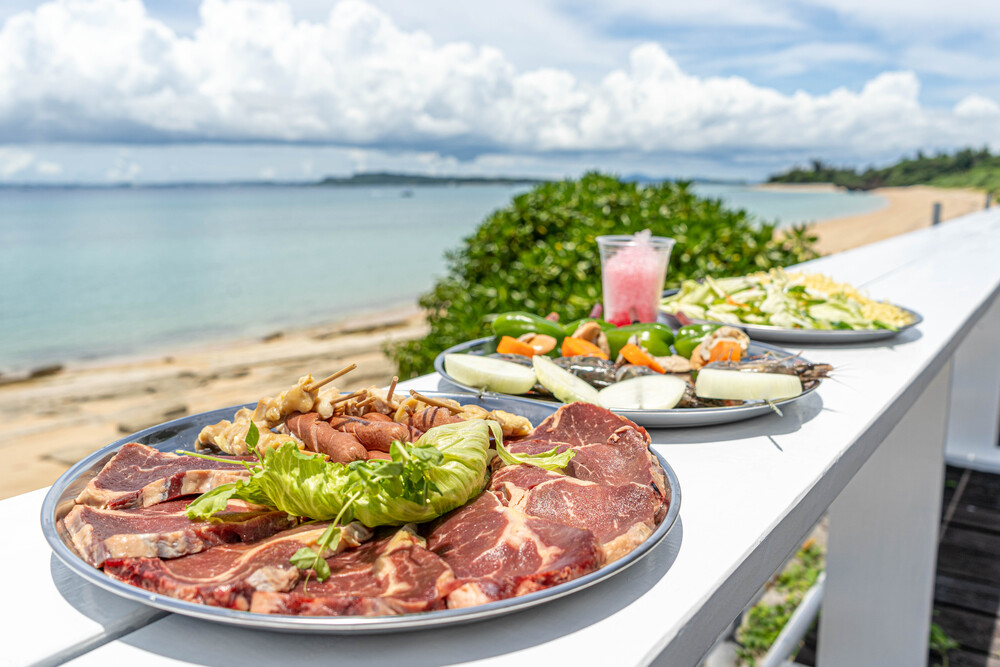 【BBQ&クリアSUP|1日コース】沖縄本島から1番近い離島「津堅島」オーシャンビューテラスでBBQ&クリアサップがセットで楽しめる!パラソル1つ無料レンタルの特典付きです★