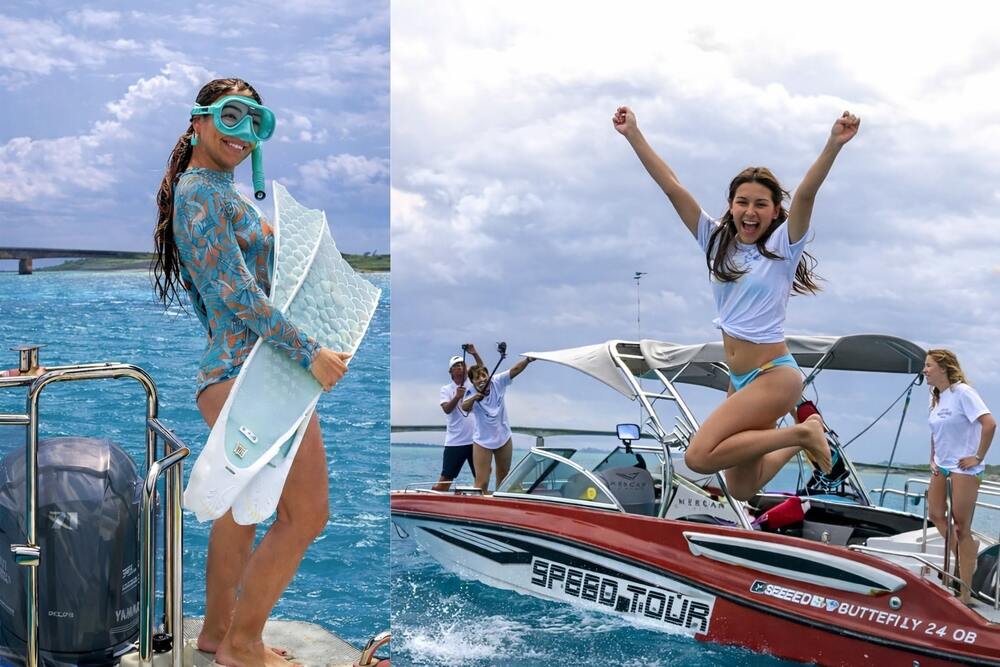 サンゴ礁に囲まれた伊平屋島で海人をしている【りなまる】です。伊平屋島の海を知り尽くした私たちがその日の最高なポイントをボートでご案内!女性スタッフも常に乗船しているので皆さん安心してお申込みください♪